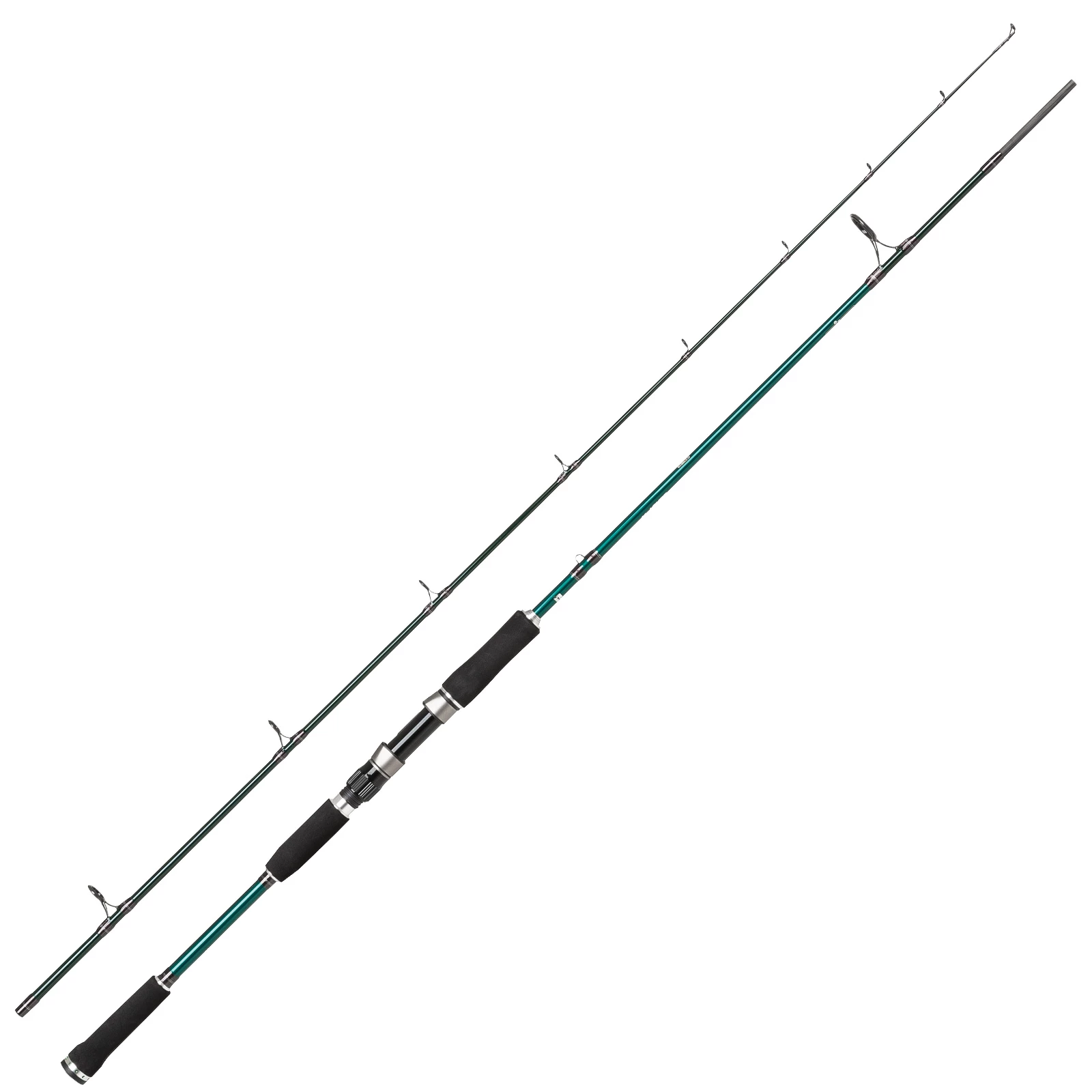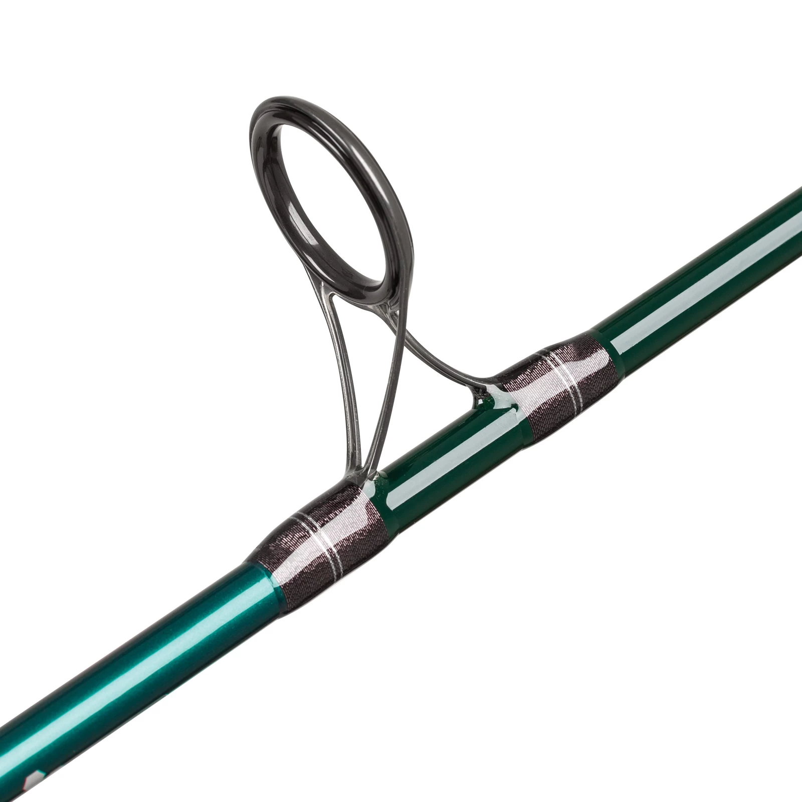 Die hochwertigen, leichtgewichtigen Fuji-Ringe bieten die perfekte Führung von starken geflochtenen Schnüren, und die Ruten sind mit leichten, ergonomischen Rollenhalterungen ausgestattet. Der Griff ist aus hochdichtem Material gefertigt, das extrem lange hält.