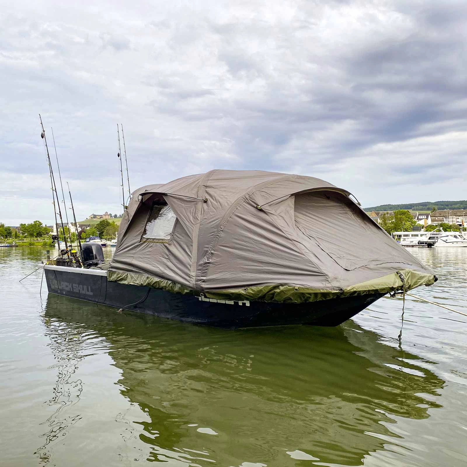 Durch die Abmessungen von 3,40 Meter Länge und 2 Meter mittlerer Breite lässt sich das Boat Cave 3.0 auf nahezu allen gängigen Bootstypen verwenden. Die vielen individuellen Befestigungspunkte in Form von D-Ringen gewährleisten eine flexible und sichere Befestigung an der Bootswand. Die optimale Nutzungsbreite beträgt 200 Zentimeter.