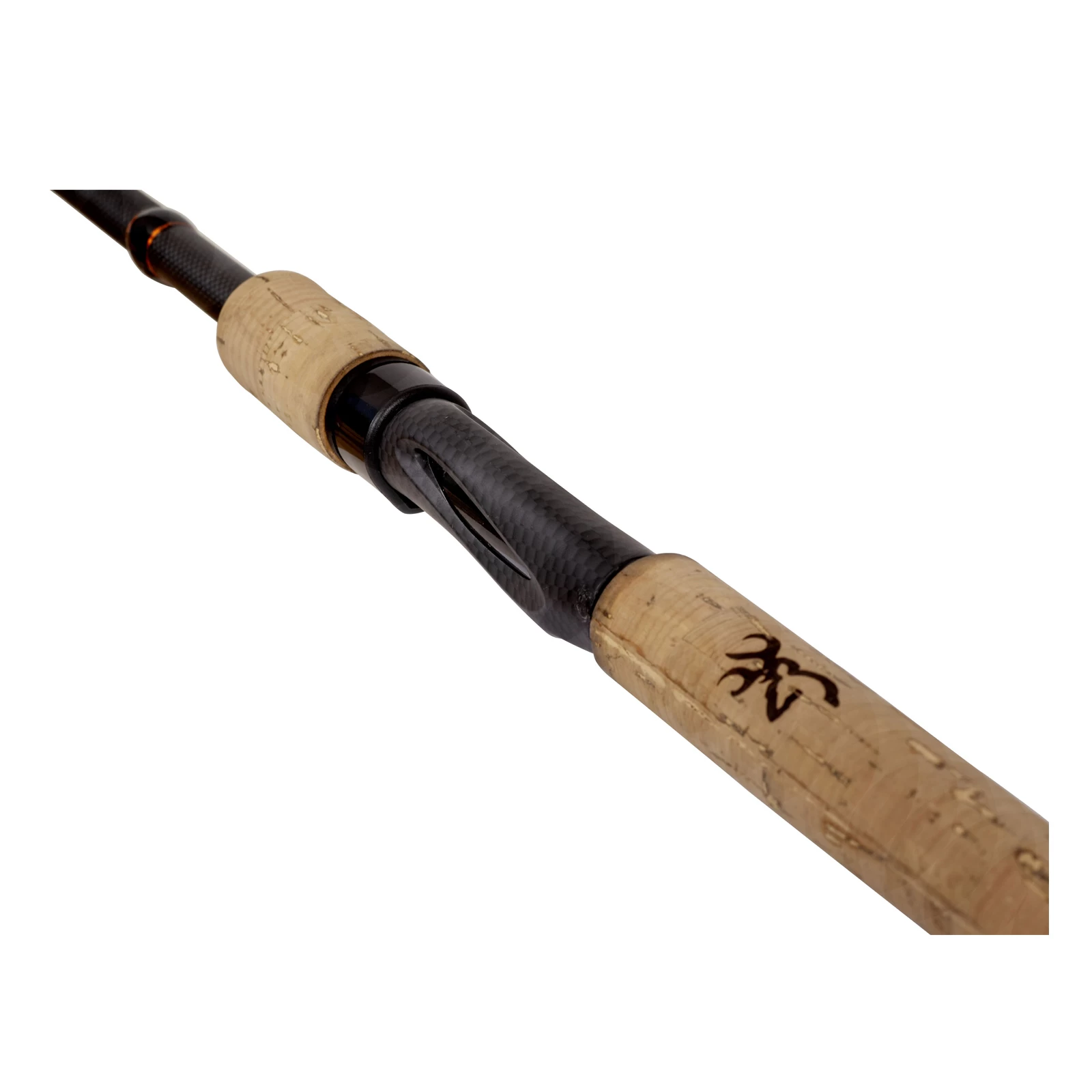 Die Browning Hyperdrome Method Feeder Ruten liegen gut ausbalanciert in der Hand und besitzen trotz des schlanken Blanks genügend Kraftreserven für einen kontrollierten Drill. Selbstverständlich sind diese Browning Ruten mit einer hochwertigen SIC-Beringung und den langen Solid-Carbon-Spitzen ausgestattet, die eine schöne semiparabolische Aktion gewährleisten.
