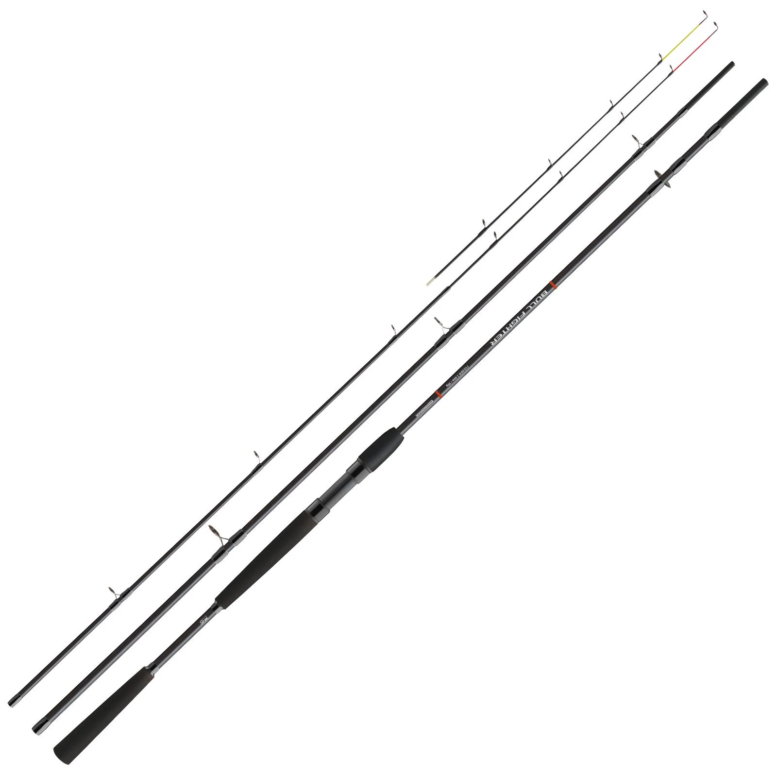 Mit diesen Cormoran Bull Fighter Feeder Ruten ist es selbst für ungeübte Feederangler kein Problem, Futter und Hakenköder an den gewünschten Fangplatz zu bringen. Die kraftvollen IM6 Kohlefaserblanks verleihen den Bull Fighter Feederruten viel Power für weite, zielgerichtete Würfe. Dank der 3 auswechselbaren Feederspitzen ist eine variable Bisserkennung garantiert, da der Fisch kein Gewicht bewegen muss wie bei den normalen Posen- oder Grundangeln.