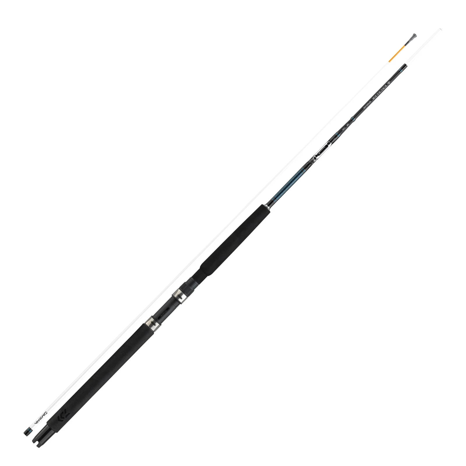 Die Materialkombination aus Kohlefaser und Glasfaser sorgt für eine enorme Bruchfestigkeit auch unter langanhaltenden Extrembelastungen. Die Exceler Trolling Ruten verfügen über eine Kreuzschlitzendkappe zur sicheren Arretierung im Rutenhalter sowie einen schraubbaren Spitzenring, der im Falle einer Beschädigung sofort und ohne Werkzeug ausgetauscht werden kann.