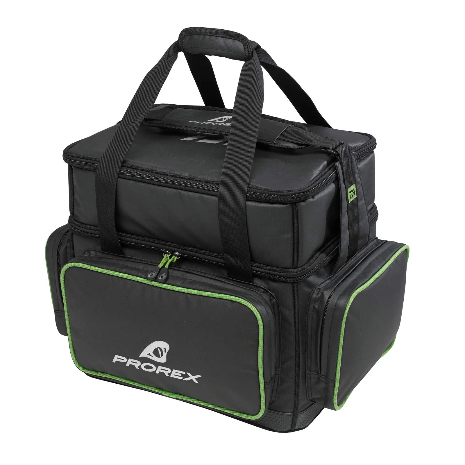 Wenn Sie regelmäßig mit großen Kunstködern zum Raubfischangeln gehen, sind Sie mit der Daiwa PROREX KUNSTKÖDERTASCHE XXL gut beraten. Die Tasche wird mit 3 extra tiefen Köderboxen 36×22,5×8,5 cm geliefert. Die große Fronttasche und die beiden Seitentaschen bieten viel Stauraum für Kleinteileboxen und Zubehör. Das große Hauptteil über den Boxen bietet zudem Stauraum auch für große Teile und kann mittels Klettverschluß-Dividern in beliebig große Abteile unterteilt werden. Der gummierte Boden verhindert ein Eindringen von Nässe. Der gepolsterte Schultergurt sorgt selbst bei voll beladener Tasche für hohen Tragekomfort. Das gesamte Obermaterial ist wasserabweisend und hält einem kurzen Schauer stand, ohne sich vollzusaugen. Diese Tasche ist auch ideal zum Bootsangeln.