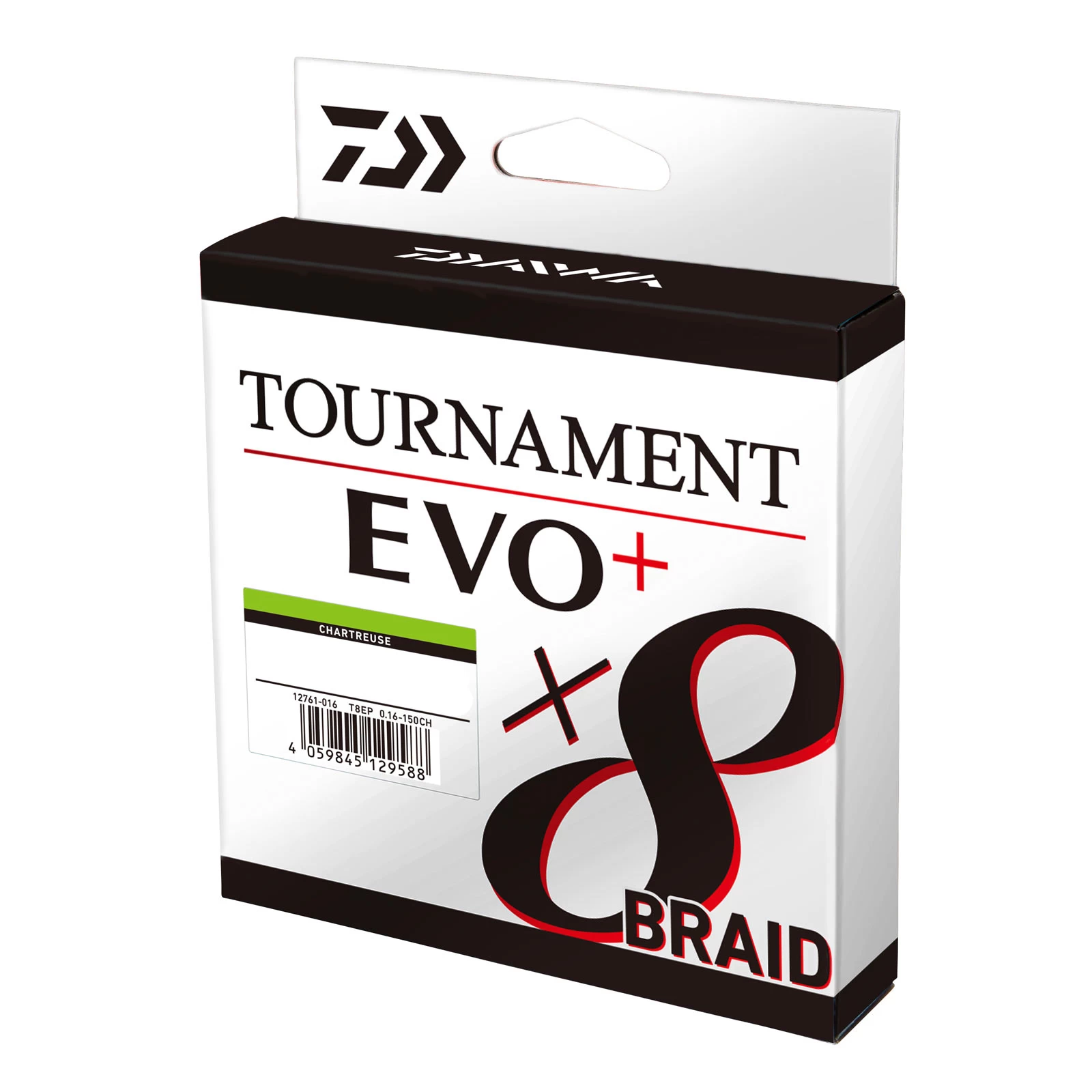 Die bekannten Daiwa Tournament 8 Braid Schnur wurde für die EVO+ Ausführung noch weiter optimiert. Dabei wurde insbesondere die Oberflächenbeschichtung mit einem höheren Silikonanteil verbessert – die Angelschnur erzeugt somit noch weniger Reibungswiderstand im Wurf und optimiert die Wurfweite.