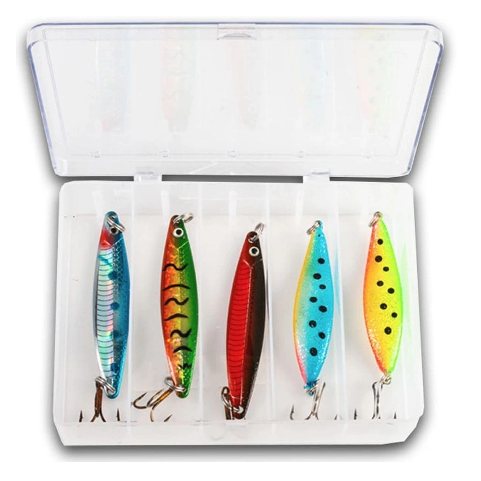 Dieses Deluxe Meerforellenblinker Set besteht aus 5 beliebten und fangstarken Meerforellenblinkern 18g mit extrascharfen Drillingshaken. Diese Meerforellenköder haben ein äußerst aufreizendes Schwimmverhalten.