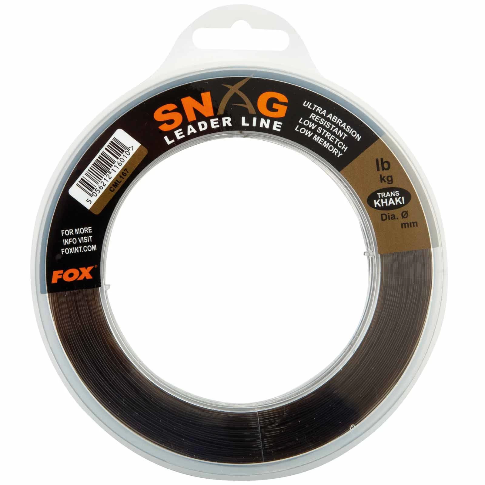 Die Fox Snag Leader Trans Khaki überzeugt durch sehr hohe Abriebsfestigkeit, geringe Dehnung und starke Knotentragkraft.