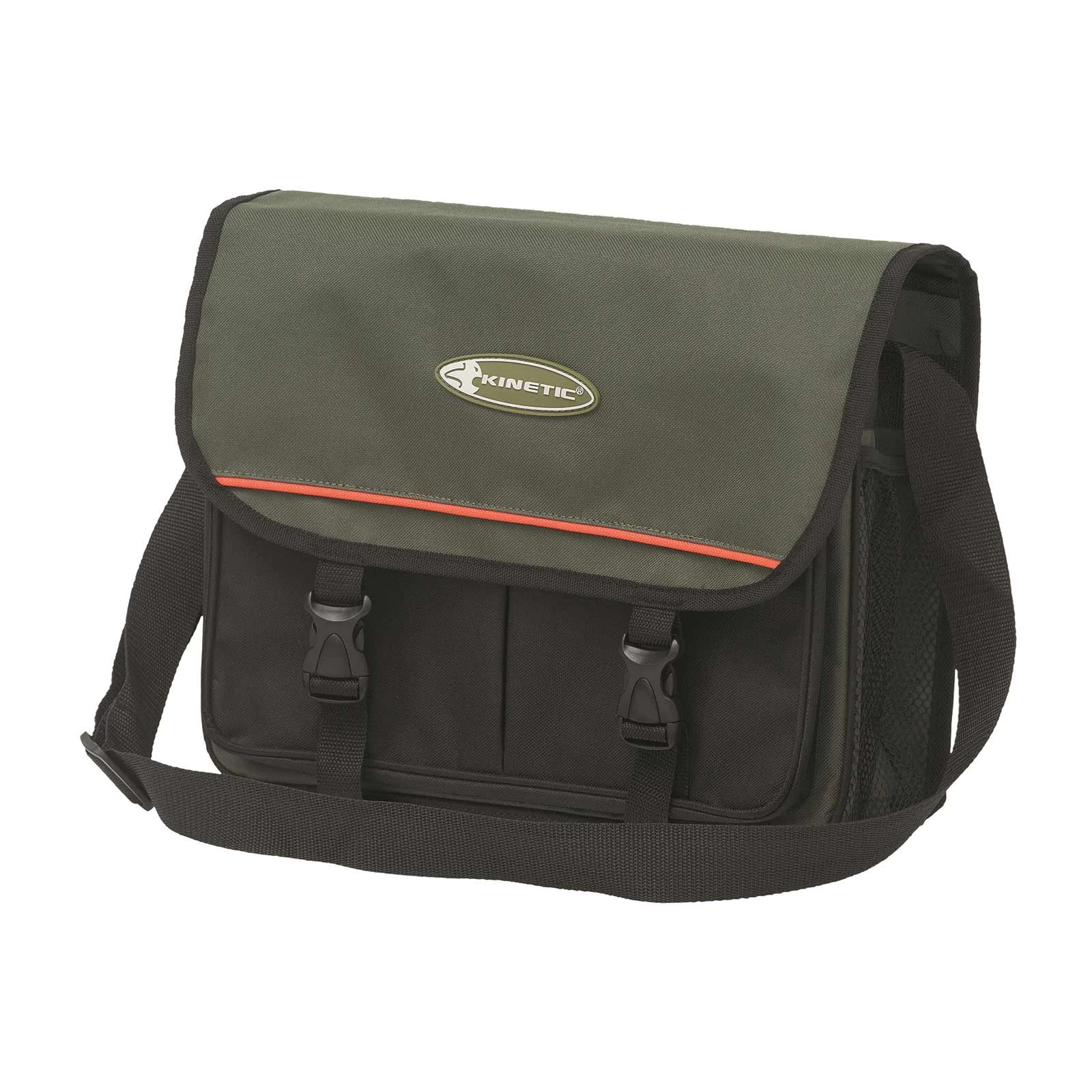 Klassische Kinetic Anglertasche in bewährtem Design für alle Einsatzbereiche. Der Deckel wird mit zwei kräftigen Schnallen sicher verschlossen und hält die Ausrüstung an Ort und Stelle. Neben dem Hauptfach ist sie mit zwei Mesh- und Cordura-Taschen ausgestattet.