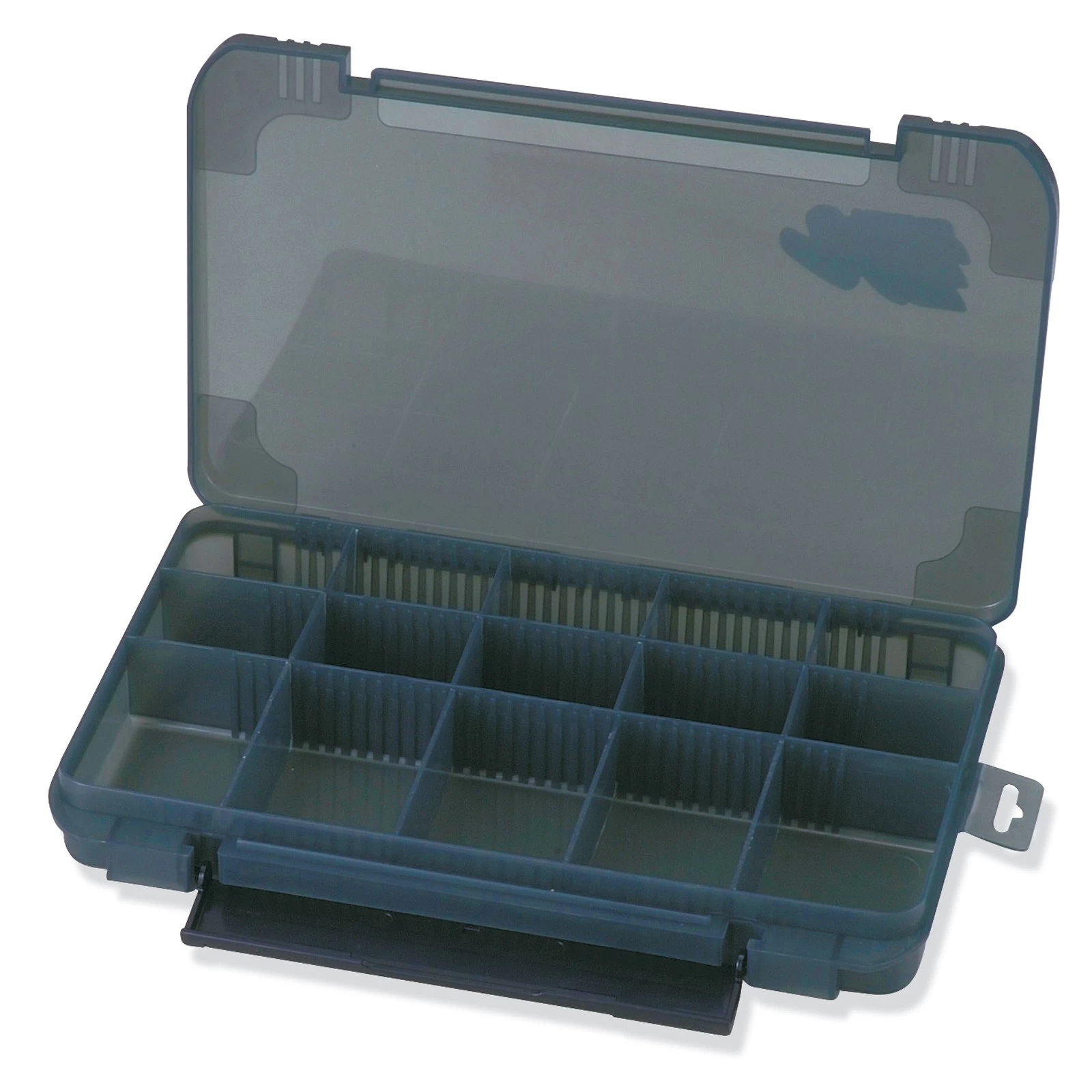 Große und hohe Köderbox mit vielen einteilbaren Flächen.
