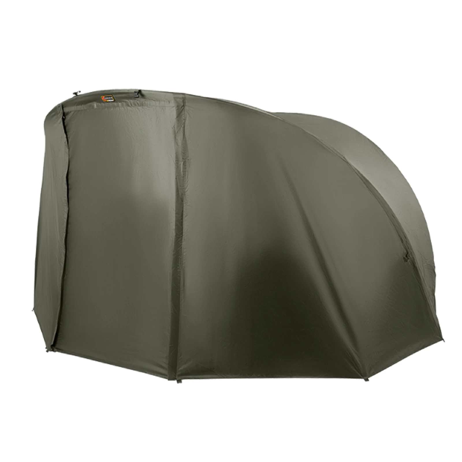 Um den Bivvy-Komfort auf ein neues Niveau zu heben, ist diese Version mit einem vollständigen Überwurf ausgestattet, der die Bildung von Kondenswasser erheblich reduziert. Das liegt an der verbesserten Isolierung, die Sie an warmen Tagen kühl und an kühlen Tagen warmhält. Außerdem verlängert sie die Vorderseite des Bivvys um weitere 25 cm und ist damit ein idealer Vorbau zum Verstauen von Stiefeln und anderem Zubehör. Der Überwurf verwendet dieselben Heringe wie das Bivvy selbst, was bedeutet, dass nur vier zusätzliche Heringe mitgeliefert werden, um den Überwurf zu befestigen.