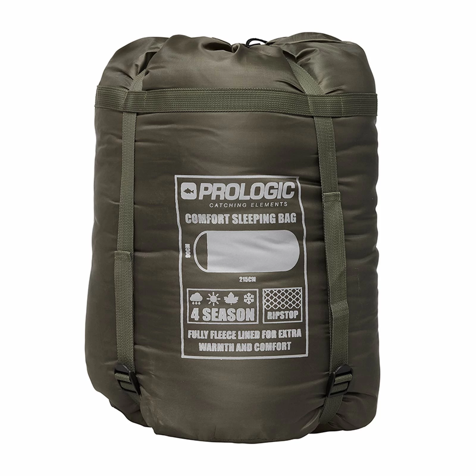 Der aus ultraleichtem, atmungsaktivem Ripstop-Gewebe gefertigte Schlafsack verfügt außerdem über eine statisch positionierte Hohlfaserfüllung, die für eine optimale Isolierung und einen rundum besseren Komfort sorgt. Der Schlafsack lässt sich mit Hilfe von elastischen Gurten an Kopf- und Fußteil Ihrer Karpfenliege befestigen, während ein mittig platzierter und verstellbarer Gurt die Bewegungsfreiheit noch weiter einschränkt.