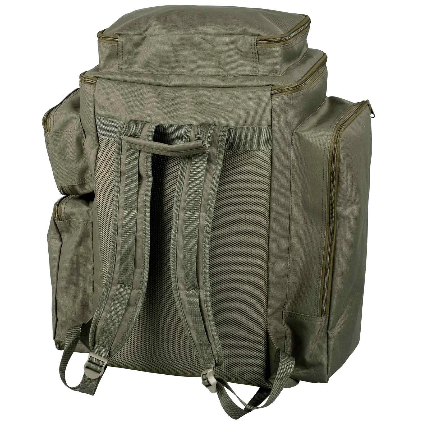 Der Spro C-Tec Mega Backpack ist ein XXL Rucksack mit vielen Aufbewahrungsmöglichkeiten. Es gibt sowohl eine Tasche für Buzzer Bars (links), eine Tasche für eine Tackle Box (vorne), zwei Taschen für verschiedenes Zubehör (rechts) und eine zusätzliche Tasche (oben) für das Handy oder die Brieftasche. Das Hauptfach kann sowohl von oben, als auch von vorne geöffnet werden, was sehr nützlich sein kann, wenn man verstautes Tackle am Boden des Rucksacks erreichen muss.
