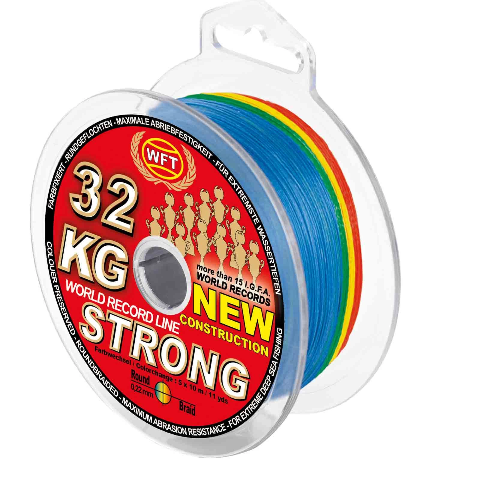 EIGENSCHAFTEN: Die WFT KG STRONG ist aufwendig geflochten. Im Ergebnis erwartet Sie eine rund geflochtene Angelschnur. Rund bedeutet in der Praxis weite Würfe, optimierter Schnurablauf und bei Drift weniger Angriffsfläche.